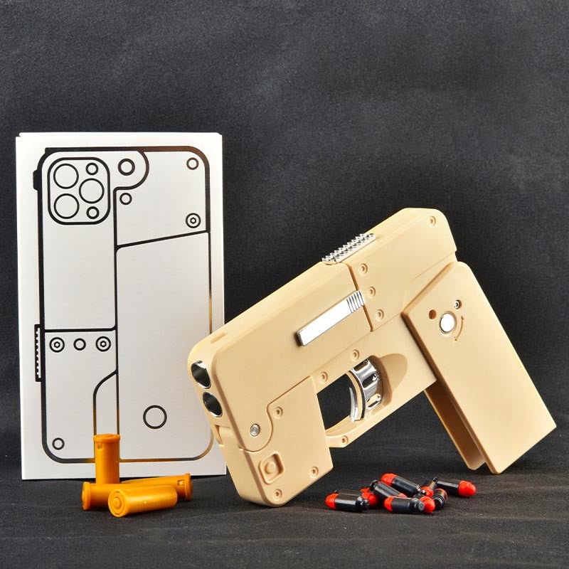 【Folding Phone Toy Pistol】Folding like a real mobile phone, easy to carry. Blowback-style loading mechanism (one cock per shot) and an eject-able magazine! Double-barreled channel reloading, fast reloading!! Great for teaching gun safety.